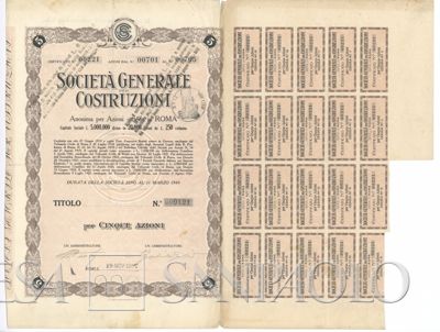 Generale per Costruzioni SA, certificati azionari al portatore