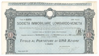 Immobiliare Lombardo-Veneta SpA, certificato azionario al portatore