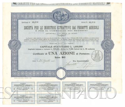 Industrie estrattive dai prodotti agricoli, certificati azionari al portatore