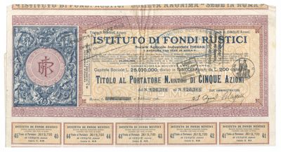 Istituto di Fondi Rustici Società agricola industriale italiana SA, certificato azionario al portatore