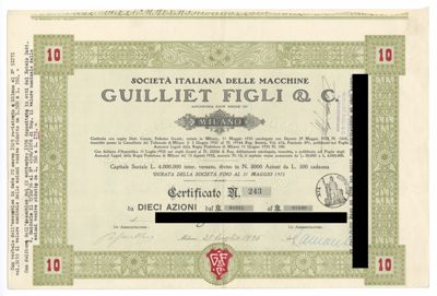 Italiana Macchine Guillet Figli & C. SA, certificati azionari nominativi
