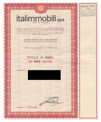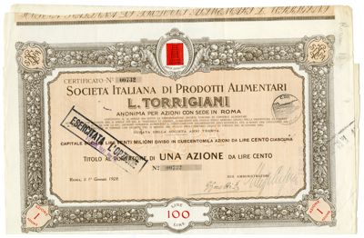 Italiana Prodotti Alimentari L. Torrigiani SpA, certificati azionari al portatore