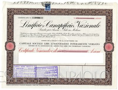 Linificio e Canapificio Nazionale SpA, certificati azionari nominativi