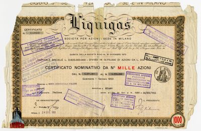Liquigas SpA, certificato azionario al portatore
