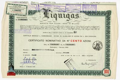 Liquigas SpA, certificato azionario nominativo