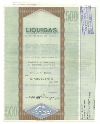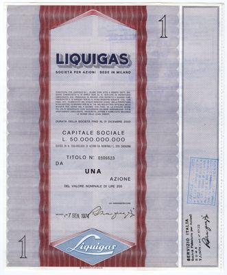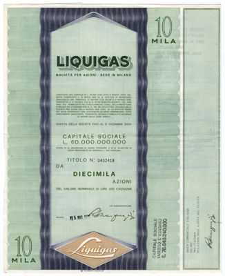 Liquigas SpA, certificato azionario al portatore