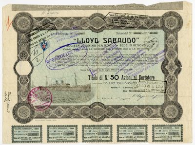 Lloyd Sabaudo SA, certificati azionari al portatore