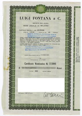 Luigi Fontana & C. SpA, certificato azionario nominativo