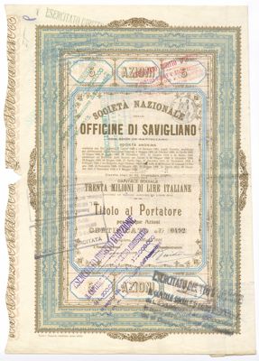 Officine di Savigliano Società Nazionale SA, certificati azionari al portatore