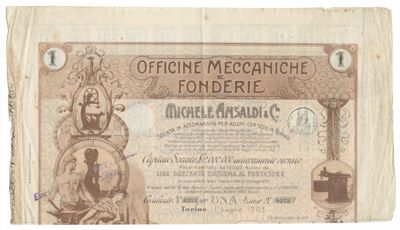 Officine Meccaniche e Fonderie Michele Ansaldi & C.ia, certificato azionario al portatore
