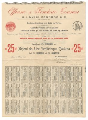 Officine Fonderie Torinesi SA, certificato azionario al portatore