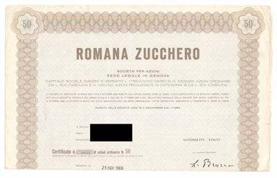 Romana zucchero SpA, certificati azionari nominativi