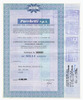Pacchetti SpA, certificati azionari nominativi