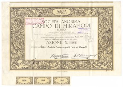SACM Società Anonima Campo di Mirafiori, certificato azionario nominativo