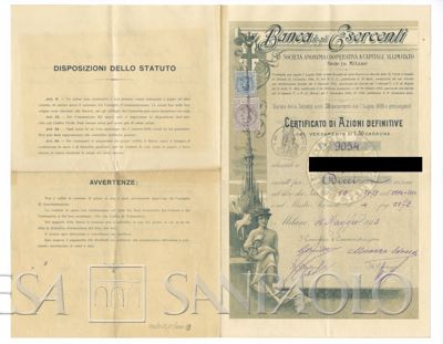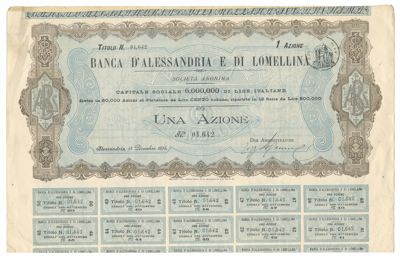 Banca d'Alessandria e di Lomellina SA, certificati azionari al portatore