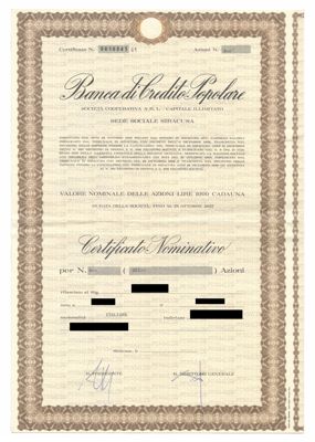 Banca Cattolica del Veneto, certificati azionari nominativi