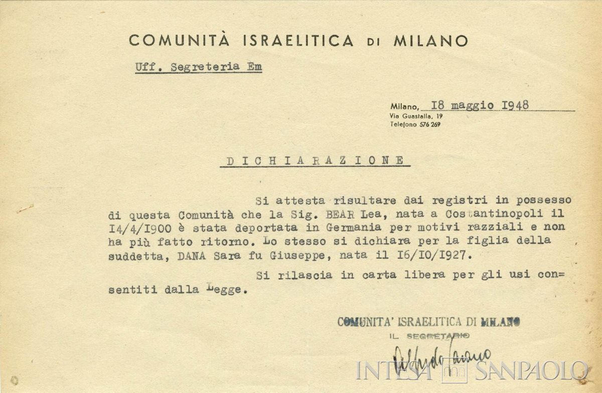 La mostra è a cura dell’Archivio Storico Intesa Sanpaolo - Carla Cioglia, Barbara Costa e Rossella Laria - ed è prodotta dalla Fondazione Memoriale della Shoah di Milano.